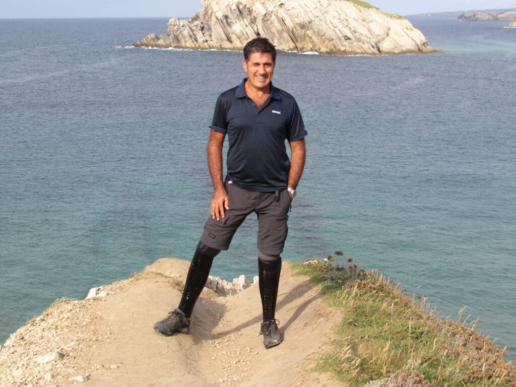 Amputado, bilateral, tibial y femoral desde hace 35 años