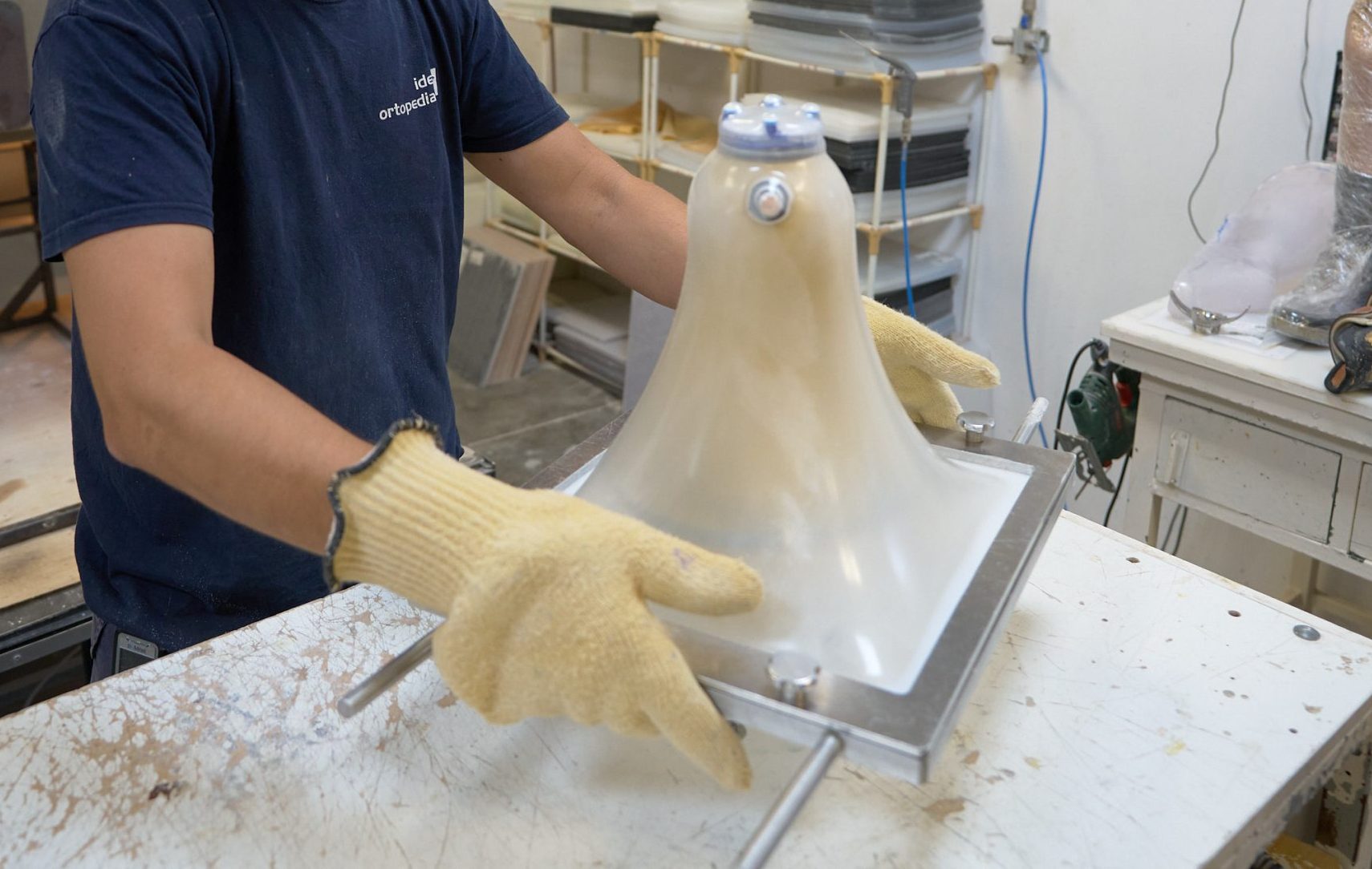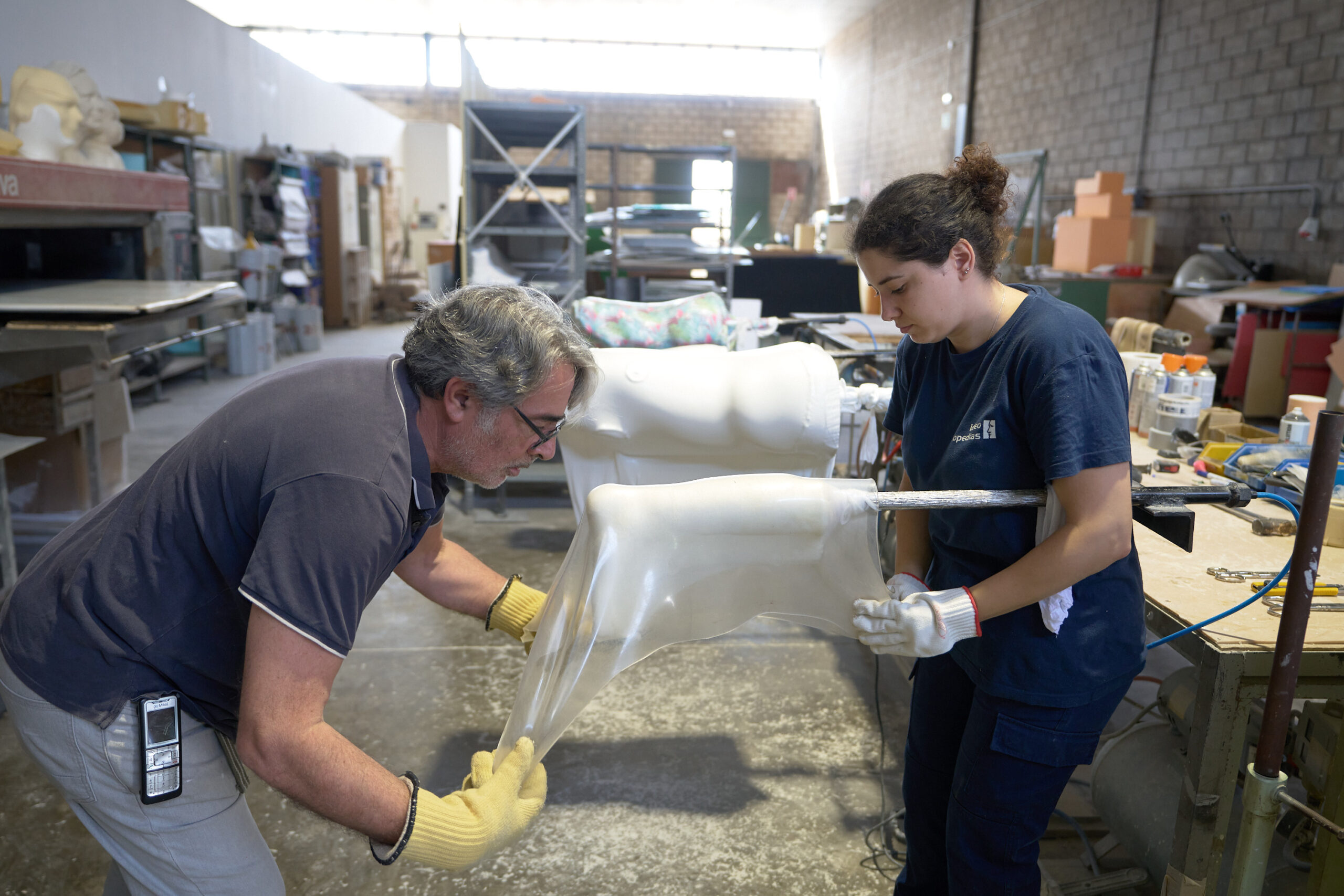 El personal técnico trabaja de manera coordinada según su especialidad para ofrecer productos hechos a medida en las mejores condiciones. Usamos materiales avanzados, aluminio, acero, titanio, fibra de carbono, aramida, resinas epoxi, preimpregnados, termoplásticos, espumas ligeras, espumas pesadas, espumas conformables, geles de silicona de diferentes densidades, de acuerdo con las técnicas tradicionales y asimismo con las más actuales en innovadoras.